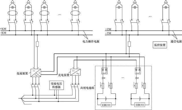 2)傳統(tǒng)的電力操作電源DC 220V/110V的充電設(shè)備撤銷,變流設(shè)備可以替代這種充電設(shè)備的整流功能。變流設(shè)備可多臺并聯(lián)輸出,便利體系擴(kuò)容;當(dāng)有溝通電輸入時,變流設(shè)備把AC 380V轉(zhuǎn)化成安穩(wěn)的DC 220V/110V;當(dāng)溝通失電時,則把混聯(lián)結(jié)構(gòu)的電池組的DC 48V轉(zhuǎn)化成DC 220V/110V。