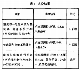 依據(jù)上述試驗(yàn)成功的并列計(jì)劃,擬定了直流屏替換的“舊直流屏一暫時(shí)直流電源系統(tǒng)→新直流屏”供電轉(zhuǎn)化施工過程:①用電池組和暫時(shí)充電機(jī)樹立一個(gè)暫時(shí)系統(tǒng)并將直流饋供支路轉(zhuǎn)至?xí)簳r(shí)直流系統(tǒng)空氣開關(guān)下方;②將原直流系統(tǒng)的允電機(jī)停用,從暫時(shí)直流系統(tǒng)引出一組直流電源接到空氣開關(guān)上方(注意極性);③合上空氣開關(guān)(此時(shí)暫時(shí)充電機(jī)不工.作).將負(fù)載轉(zhuǎn)至?xí)簳r(shí)直流電源供電;④斷開舊直流屏的饋供支路,合上暫時(shí)充電機(jī)的流輸入電源,使暫時(shí)直流系統(tǒng)正常作業(yè);⑤斷開舊直流屏交流輸入電源,撤除舊直流屏;◎新直流屏就位,設(shè)備電池,連線,接交流,調(diào)試正常;⑦重復(fù)上述過程.即可將負(fù)載接入新的直流屏;出檢食核對(duì)各饋供支路極性正確,新屏工作正常。
