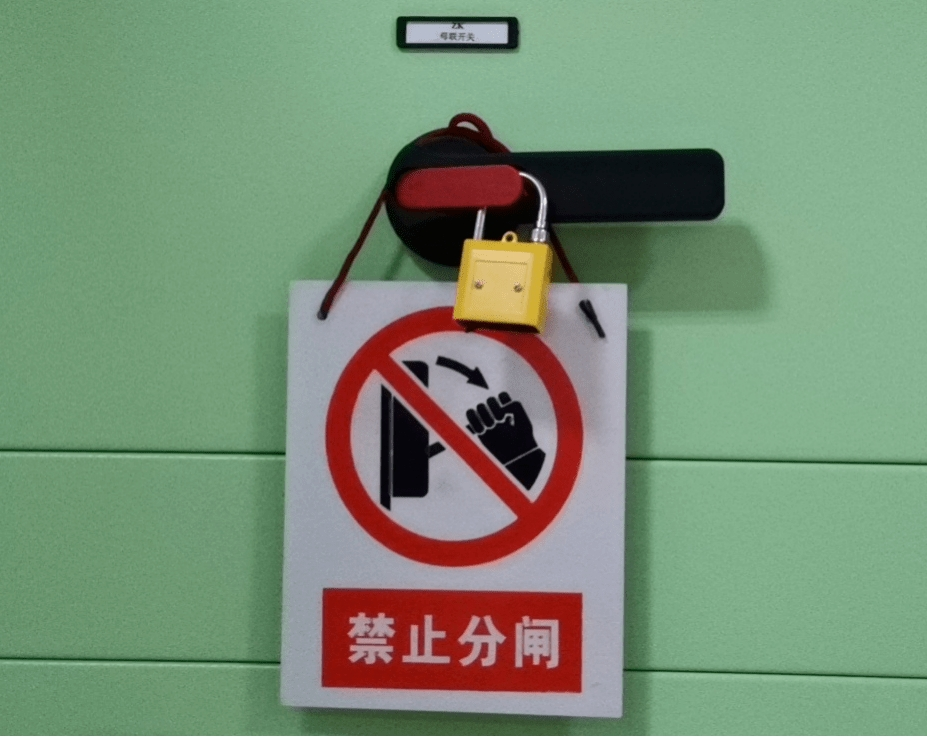 2. 兩段母線并排后,在合上的母聯(lián)開關(guān)把手上掛“制止分閘!”標(biāo)示牌,并在把手操作桿上加掛機(jī)械鎖。