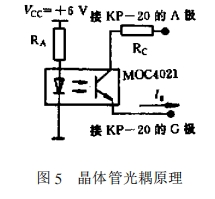 只需取下圖1所示的D1和D2兩個(gè)二極管,然后接到MOC4021光電隔絕器的二極管側(cè),另外2個(gè)端點(diǎn)按圖5所示接到晶閘管的控制極G和陽(yáng)極A上。Rc及Rx的參數(shù)規(guī)劃如下: