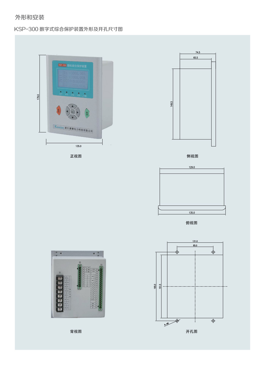 KSP-300 數(shù)字式綜合保護(hù)裝置是我公司為適應(yīng)我國(guó)電氣成套事業(yè) 發(fā) 展的需要,積累多年電力自動(dòng)化產(chǎn)品開(kāi)發(fā)經(jīng)驗(yàn),運(yùn)用新技術(shù)、新工 藝 而推出的一款經(jīng)濟(jì)型綜合保護(hù)裝置。裝置結(jié)構(gòu)設(shè)計(jì)緊湊、體積小 巧,交 直流電源通用,可滿足 10KV 及以下電壓等級(jí)進(jìn)出線、廠用 變等保護(hù)測(cè) 控功能。
